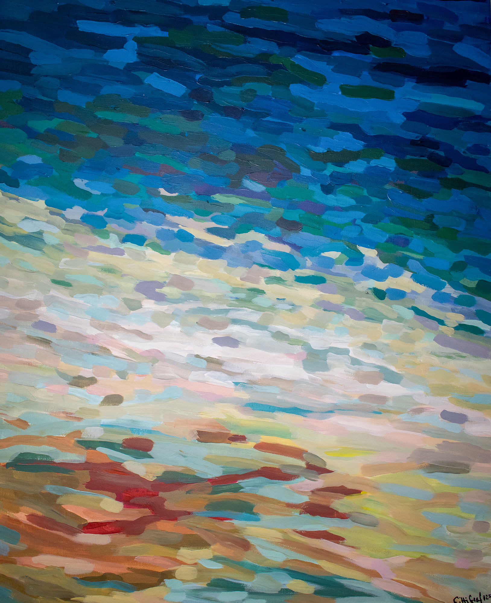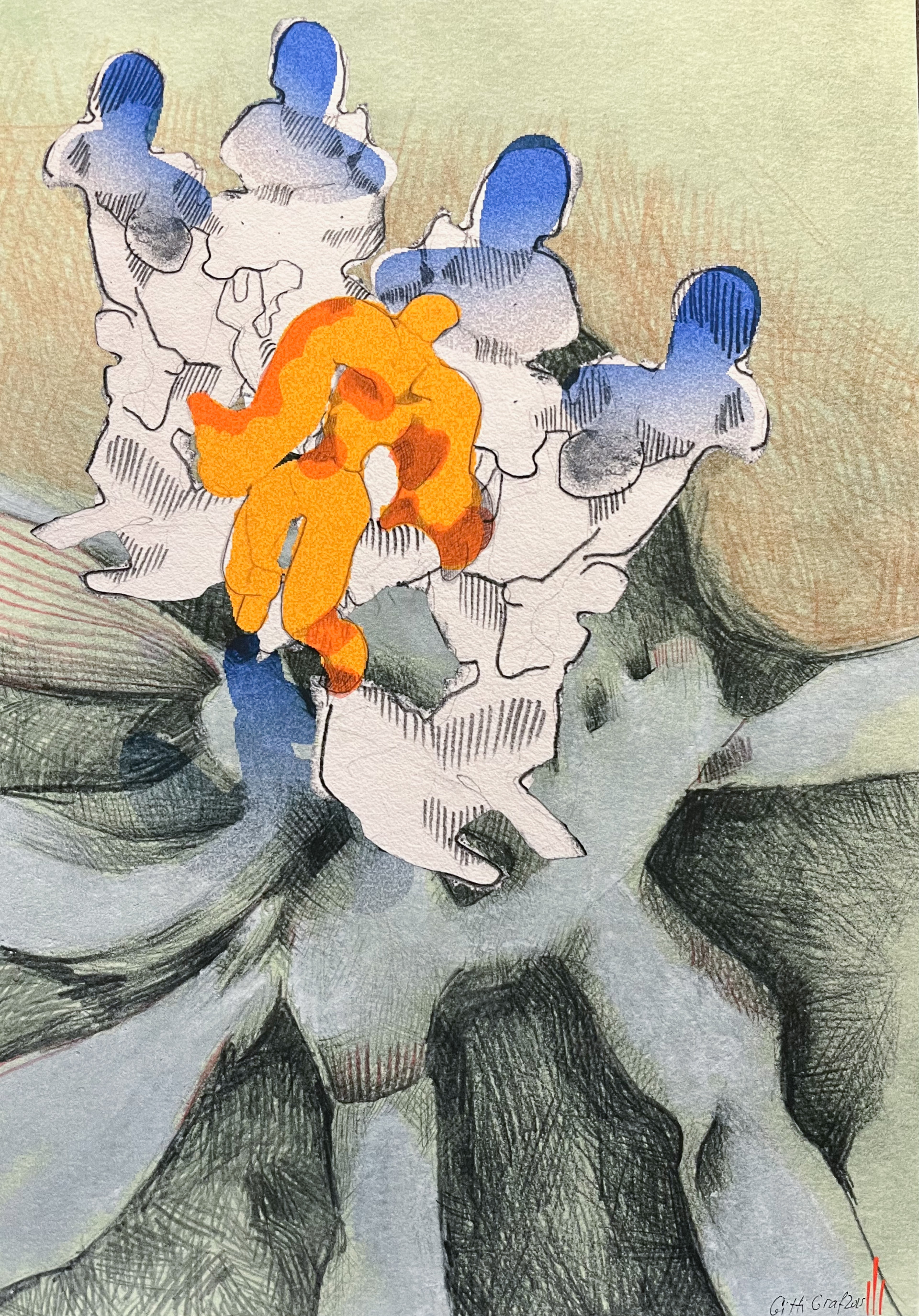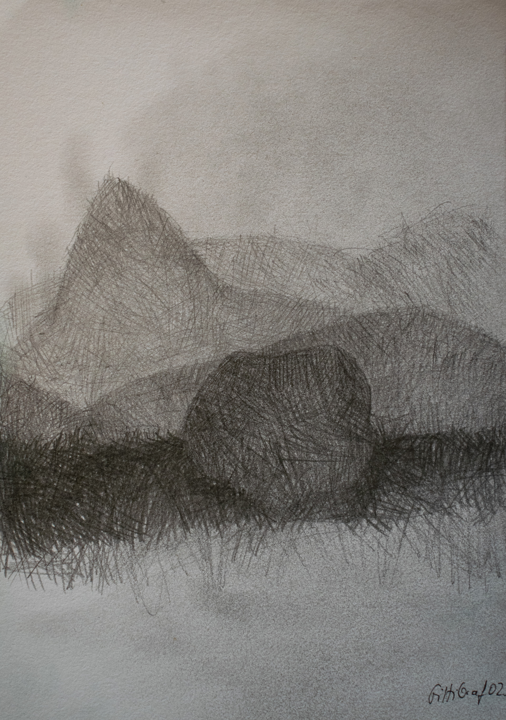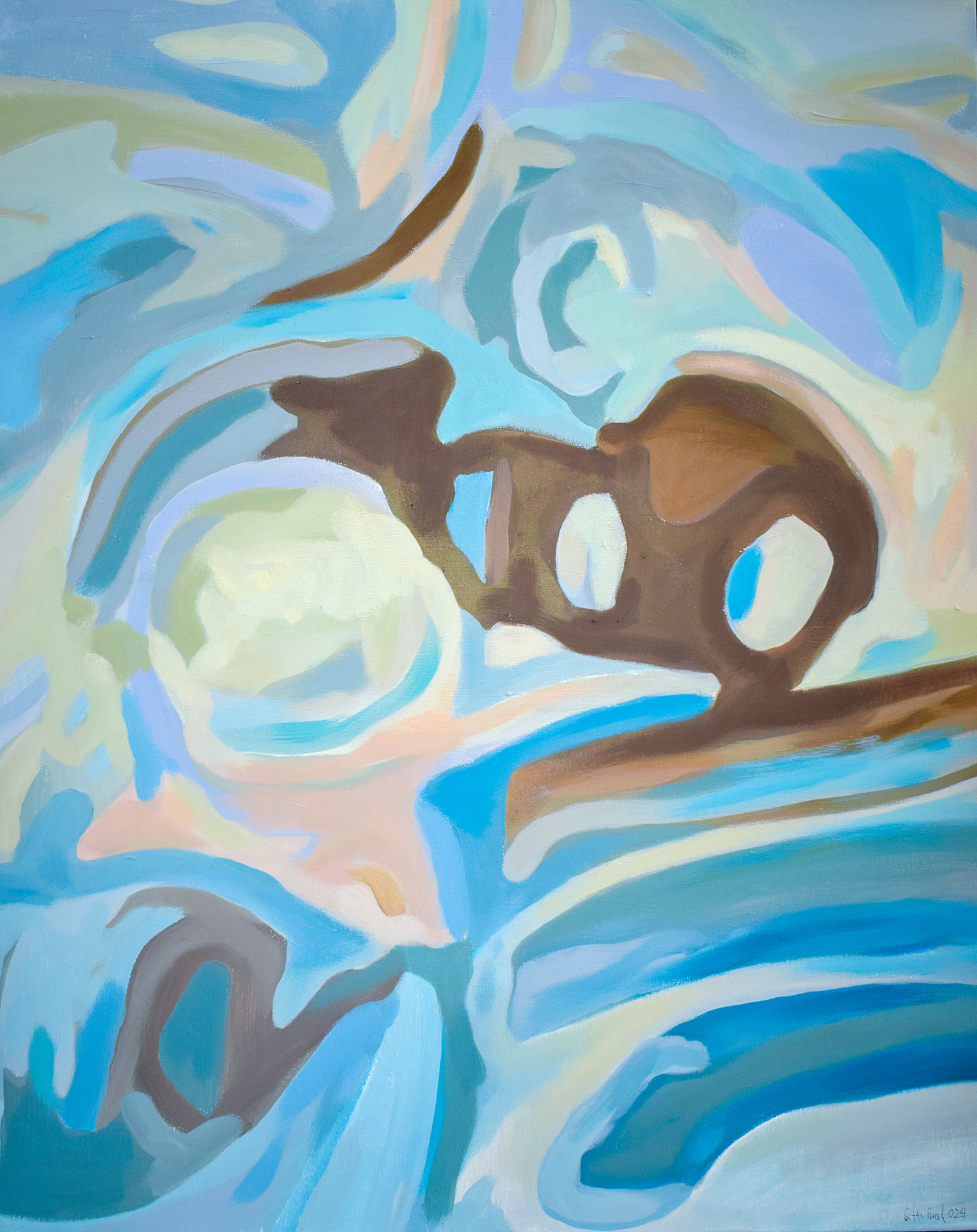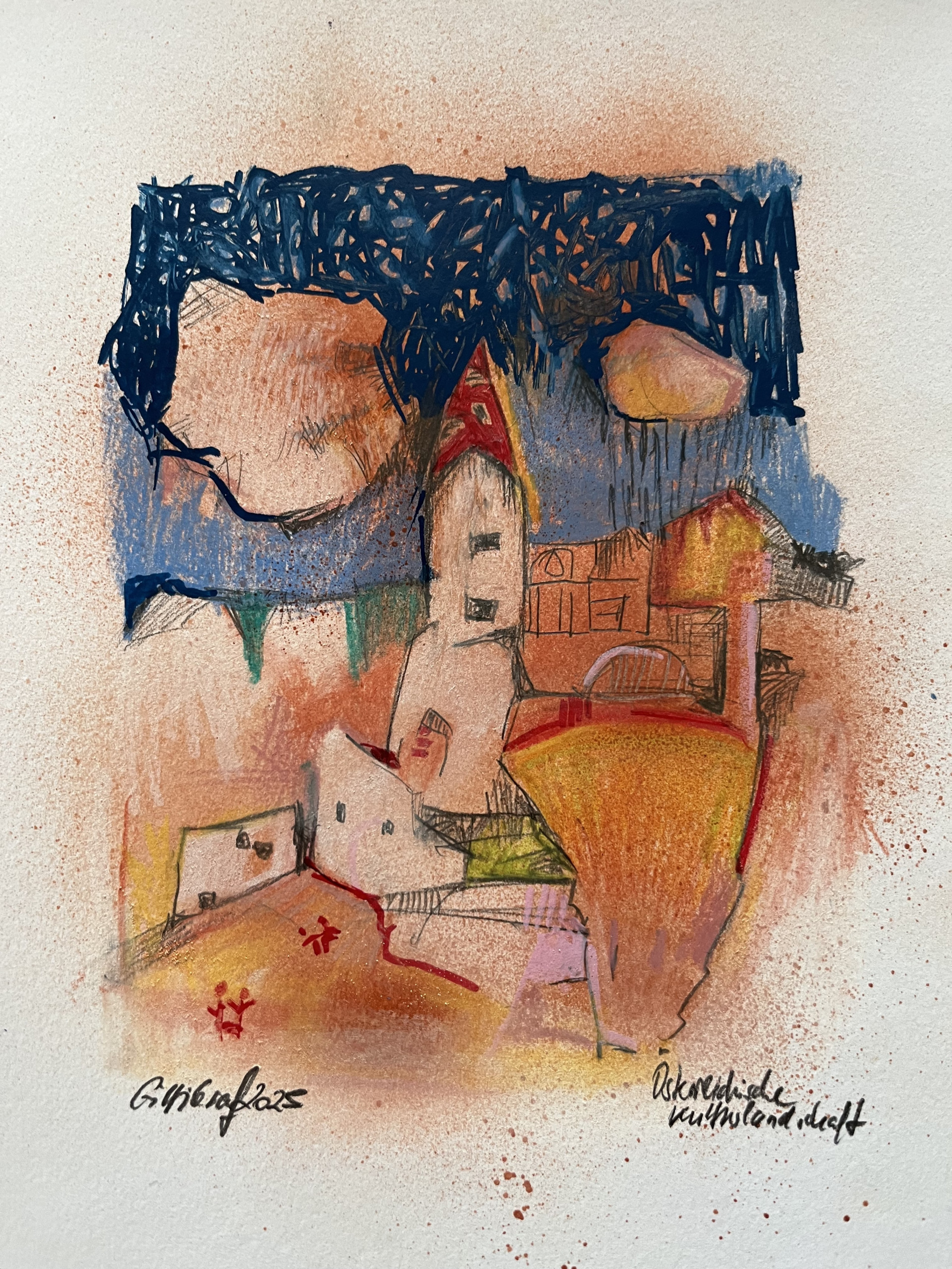 Meine Arbeiten entstehen oft aus Eindrücken der Natur – nicht als Abbild, sondern als Reaktion. Ich war viel in den Bergen unterwegs, habe das Gehen, die Weite, die Stille gesucht. Dort habe ich zum ersten Mal etwas wie Heimat gespürt – nicht als Ort, sondern als Zustand. Als Möglichkeit, mit etwas Größerem verbunden zu sein. Diese Erfahrungen fließen in meine Bilder ein, nicht erkennbar, aber spürbar.